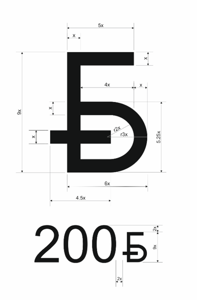 Графический знак представляет собой кириллическую заглавную букву «Б», с которой начинается слово «Беларусь», что позволяет ассоциировать изображение с Республикой Беларусь и национальной денежной единицей страны. По центру буквы проведена параллельная верхней линии черта, символизирующая устойчивость, равновесие и стабильность.
